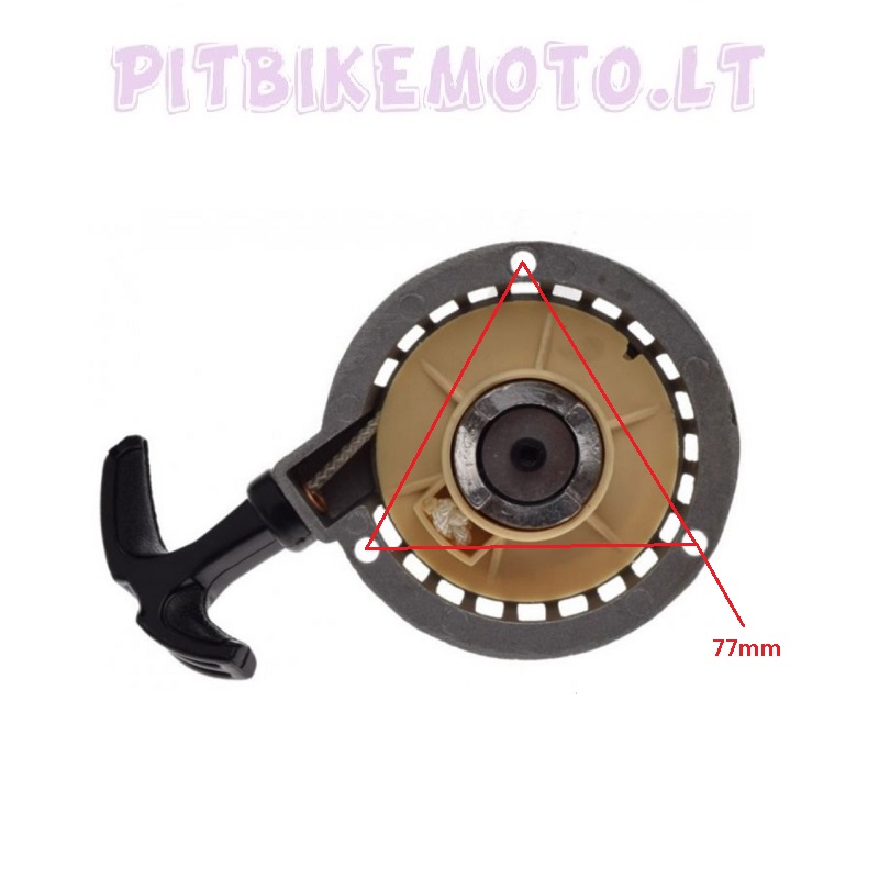 Mini moto 2t keturračių, britvučių ir krosinukų rankinis užvedimas. Tarp tvirtinimo skylių 77mm